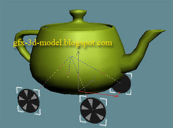 Repeat Step 2 to Step 6 for all the other wheels. Now you move the teapot and see the wheels Rotating. If the wheel rotates too fast, in the expression editor under Expression for Y Rotation type as below
