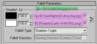 Then click Go To Parent button (Ref Pictures below) and click on the button labelled None in the Self illumination slot and form Material/Map Browser select Bitmap and assign the same Night Map that you assigned to the Shadow Map within Falloff.