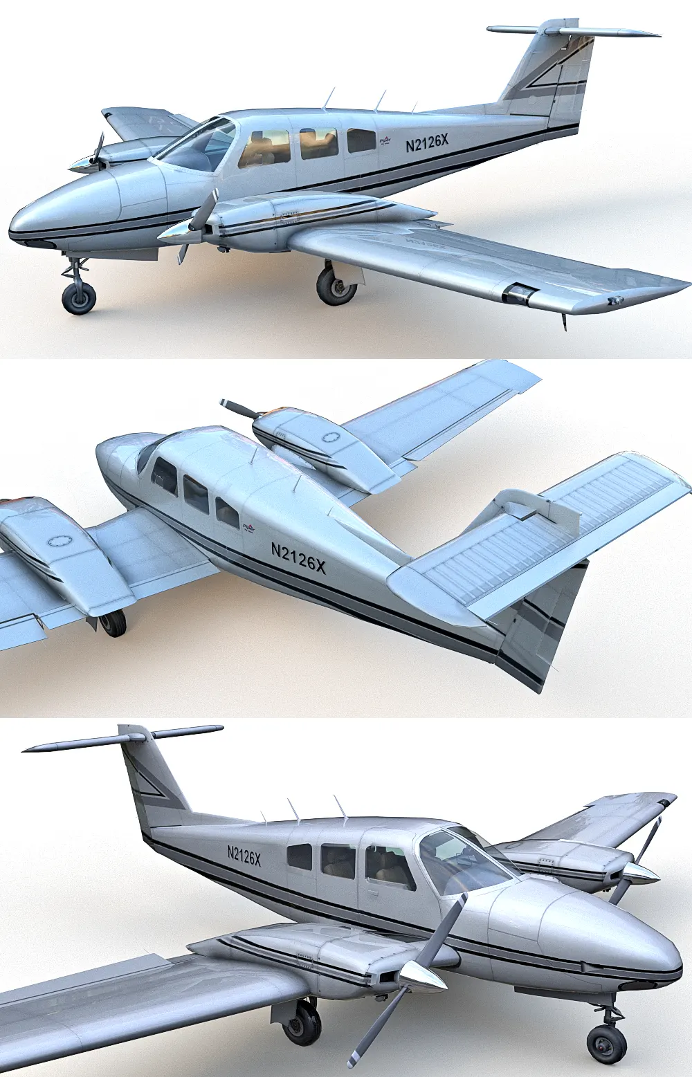 Piper PA-44 Seminole 3d model, twin-engined light aircraft.